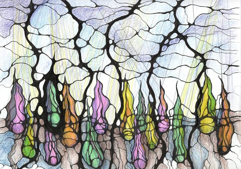At the heart of NeuroGraphica lies the connection between brain activity, emotions, and creativity. This method activates neural pathways by combining structured lines, shapes, and colors to externalize inner thoughts and patterns. It’s a creative process that calms the mind, stimulates new ideas, and inspires insights.